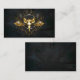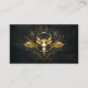 Artistically drawn, symmetrical, composition of black and gold, bird wings, golden, bird skull decorated with gilded pattern on dark, textured background.Gothic style