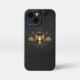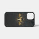 Artistically drawn, symmetrical, composition of black and gold, bird wings, golden, bird skull decorated with gilded pattern on dark, textured background.Gothic style