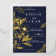 "Golden Blooms Of Love" | Romantic Navy Wedding Foil Invitation