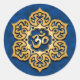 Golden Blue Lotus Flower Om Classic Round Sticker