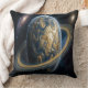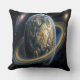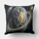 Golden Blue Planet with RIngs Throw Pillow