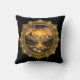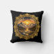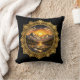 Golden Boho Mandala Mountain Sunset Art | Black Throw Pillow