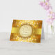 Celebrate the 50th anniversary couple with a card that celebrates this achievement in style. Faux golden bokeh images sprinkle down against a golden gradient background. The main text is highlighted in an ornament held on by a gold ribbon image. The interior contains placeholder text for a special message or delete this text to handwrite your own. Available in alternate colors with matching products.