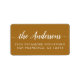 Golden Brown Script Family return address label featuring a rich golden brown background with white handwritten script for the family name and a clear, easy-to-read address below. The warm, earthy tone with subtle mustard undertones adds depth and character while keeping your mailing details crisp and legible. Ideal for everyday mailing, moving announcements, holiday cards, and business correspondence with a polished, cohesive look. Easily personalize with your details.