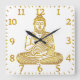 A stunning representation of a gold Buddha seated peacefully. The figure displays a serene expression, with one hand raised in a gesture of peace.