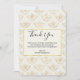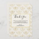 Flat thank you card with an elegant pattern with gold colored bumble bees in a repeating pattern on a cream colored background.