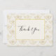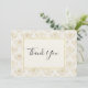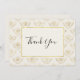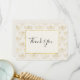 Flat thank you card with an elegant pattern with gold colored bumble bees in a repeating pattern on a cream colored background.