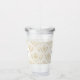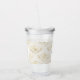 Acrylic tumbler with an elegant pattern with gold colored bumble bees in a repeating pattern on a cream colored background.