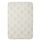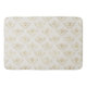 A bath mat with an elegant pattern with gold colored bumble bees in a repeating pattern on a cream colored background.