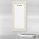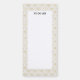 A fridge notepad with an elegant pattern with gold colored bumble bees in a repeating pattern on a cream colored background.