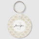 Cute key chain with an elegant pattern with gold colored bumble bees in a repeating pattern on a cream colored background.