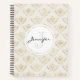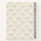 Spiral notebook with an elegant pattern with gold colored bumble bees in a repeating pattern on a cream colored background.