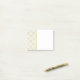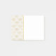 Sticky notes with an elegant pattern with gold colored bumble bees in a repeating pattern on a cream colored background.