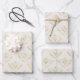 Wrapping paper sheets with an elegant pattern with gold colored bumble bees in a repeating pattern on a cream colored background.