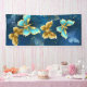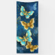 Composition of flying, jewelry, gold and dark butterflies on textured jewelry background. Golden butterfly.