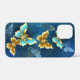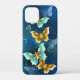 Composition of flying, jewelry, gold and dark butterflies on textured jewelry background. Golden butterfly.