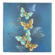 Composition of flying, jewelry, gold and dark butterflies on textured jewelry background. Golden butterfly.