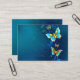 Flying gold, jewelry butterfly on blue textural background. Design with butterflies.