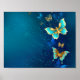 Golden Butterflies on a Blue Background Poster