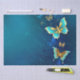 Golden Butterflies on a Blue Background Tissue Paper