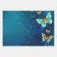 Golden Butterflies on a Blue Background Wrapping Paper Sheets