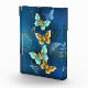 Composition of flying, jewelry, gold and dark butterflies on textured jewelry background. Golden butterfly.