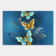 Composition of flying, jewelry, gold and dark butterflies on textured jewelry background. Golden butterfly.