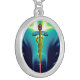 GOLDEN CADUCEUS SYMBOL / Blue Turquoise Silver Plated Necklace