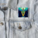 GOLDEN CADUCEUS VETERINARY SYMBOL / Blue Turquoise Button