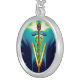 GOLDEN CADUCEUS VETERINARY SYMBOL / Blue Turquoise Silver Plated Necklace