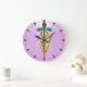 GOLDEN CADUCEUS VETERINARY SYMBOL / Pink Large Clock