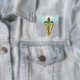 GOLDEN CADUCEUS VETERINARY SYMBOL / Teal White Button