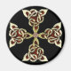 A golden Celtic cross with a Celtic knot button in the center, this cross lies On a red marbled background. Celtic cross t shirts and gifts, great for Christians, Neo-pagans, Wiccans and more.