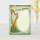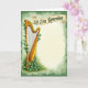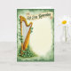 This card features a golden Celtic harp anchored in the lower-left area, its polished curves and carved details catching the light like a treasured keepsake shared between close friends 💚. Ivy in rich green wraps around the frame and spills at the base, as if it’s gently holding the instrument in place with a caring touch ☘️. Above the harp, a parchment-style banner unfurls across the upper portion, adding an old-world accent to the scene. The phrase “Let Erin Remember” sits on the banner in flowing dark green lettering, centered so it reads clearly at a glance. Behind everything, the middle of the card stays a warm creamy off-white, giving the harp room to stand out. Around the edges, soft washes of green form a loose border like a misty woodland frame. The contrast between the metallic gold and the leafy greens draws your eye from the ivy’s curling tips up to the banner’s folded ends. A diffused green edge surrounds the creamy center like a watercolor halo, with the harp’s strings shown as fine pale lines.