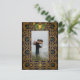 A "save the date" postcard has a beautiful ornate Celtic style golden frame.