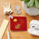 Golden Chinese paper-cut of a Dragon + golden Chinese Auspicious clouds (line graphic) + dark red Chinese frames in the four corners. Design on square keychain with monogram (front and back) on red background. Matching greeting card, postcard, sticker and more. Perfect for Chinese Dragon New Year 2024 or birthday (people born in Dragon year).