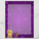 Glamorous magical Christmas illustration: Sparkling golden gift box next to gold and a purple christmas tree balls and golden pearls on an elegant purple bokeh background.