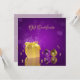 Glamorous magical Christmas illustration: Sparkling golden gift box next to gold and a purple christmas tree balls and golden pearls on an elegant purple bokeh background.