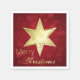 A golden star with snowflakes on a red bokeh background and Merry Christmas calligraphy script text.