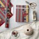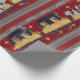 Golden Christmas Train Stripes Burgundy Gray Wrapping Paper