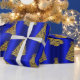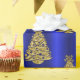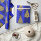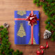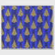 Golden Christmas Trees on Blue Wrapping Paper