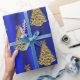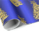 A colorful and decorative blue Christmas wrapping paper featuring a pattern of glittering, golden Christmas trees over a metallic blue background, to add a sophisticated and elegant touch to your Christmas gifts this holiday season. (Designer notes: there is also matching stickers, gift box, gift bag, gift tag, envelope, ribbon and tissue paper with this design on, just click on the 'Available on other Products' link below to check them out).