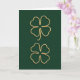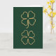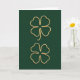 This design shows two stylized four-leaf clovers outlined in golden, wire-like lines on a deep emerald green background, like a quiet night sky for lucky charms. They’re stacked vertically, and the close pairing reads like two friends standing shoulder to shoulder, or a couple moving in step. The gold lines have a gentle, uneven texture that makes them feel touchable, and soft shadows fall down and to the right to give a slight raised look. The top clover includes a slim stem, while the lower clover is just the rounded outline, suggesting two distinct personalities that still match. A short St. Patrick’s Day greeting sits near the top in gold lettering, with a smaller line of text near the bottom in a lighter green, keeping the focus on the clovers 💚. The dark green field stays smooth and unpatterned, letting the gold shapes glow without distraction ☘️. Both clovers have softly curved leaves with subtle shadowing along the lower-right edges against the rich emerald backdrop.