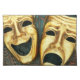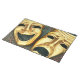 Golden comedy and tragedy masks on patterned cloth placemat