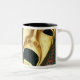 Golden comedy and tragedy masks on patterned Two-Tone coffee mug