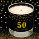 Simple, elegant 50th Birthday and golden Confetti on black Scented Candle. Text can be personalized for Christmas, 20th, 30th,40th, 60th... Birthday, Anniversary and more. This candle makes a great present!