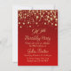Golden confetti on red 90th Birthday Invitation