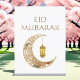 Golden Crescent Moon & Lantern Eid Mubarak Islamic Postcard