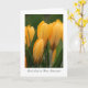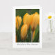The photo shows orangey-yellow crocuses in the Spring, just starting to unfurl. Very fresh with feelings of new beginnings, it's a great greetings card to send in the Spring!