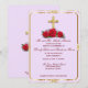 Yes, you can print on the back of your invitation for free! Most designs already have a corresponding design on the back that can be personalized using the Design Tool and going to Layers. This is a great way to communicate more information or further personalize your Golden Cross With Red Roses Catholic Invitation. The option is really up to you.